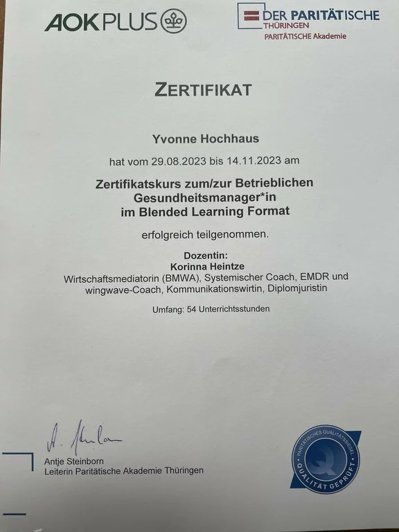 Ich bin Yvonne Hochhaus – examinierte Krankenschwester, Gesundheitsmanagerin, Supervisorin und Mentorin. Seit über 25 Jahren begleite ich Menschen in Medizin, Pflege und helfenden Berufen. Mein Ziel: Gesundheit erhalten, Ressourcen stärken und neue Wege im Umgang mit Belastungen finden.